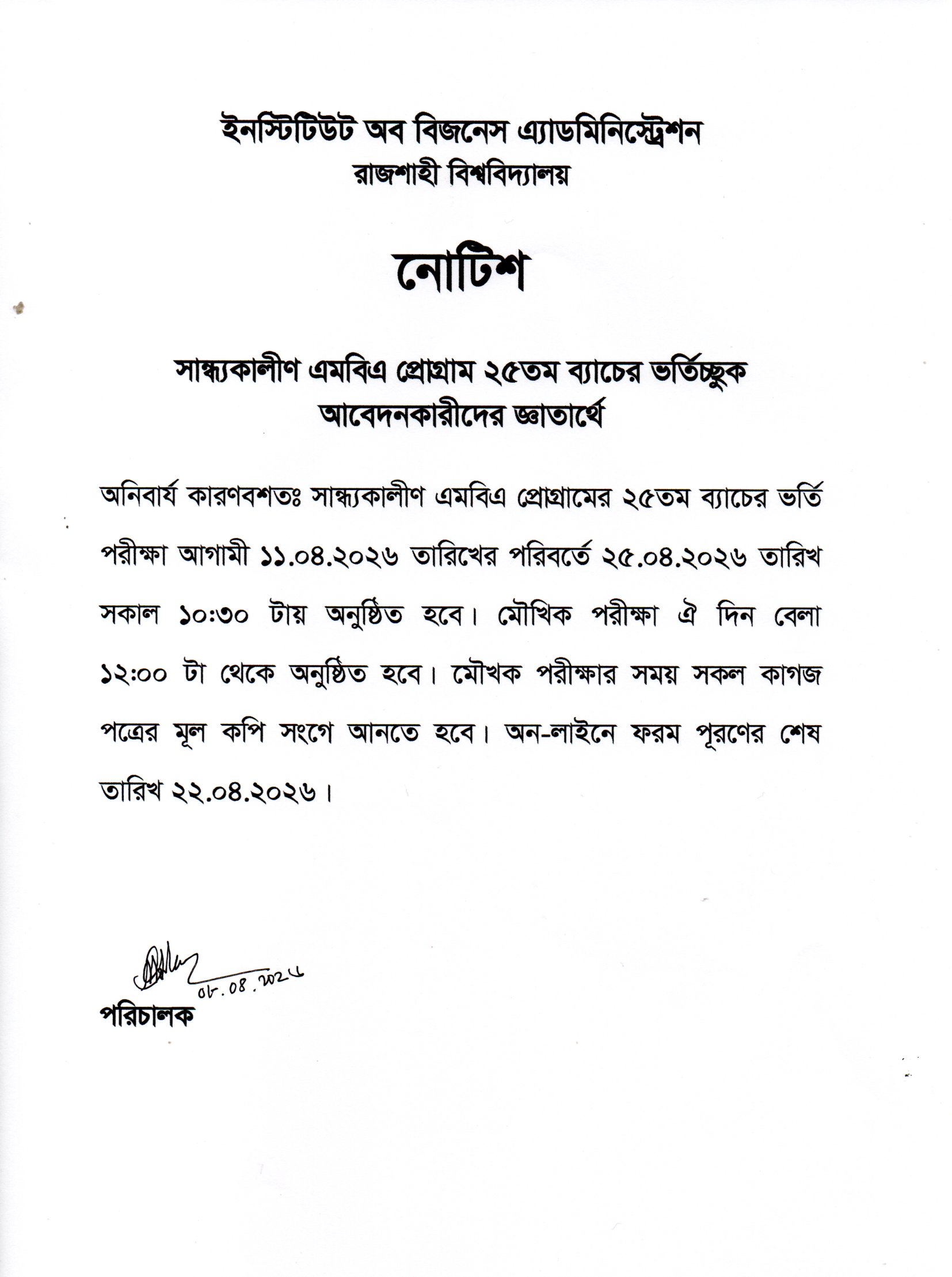 Deadline of application and date of admission test of MBA (Evening) Program 25th Batch has been rescheduled : Please click here for details ......